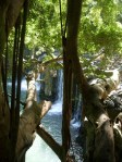 Our third stop was Kipu Falls (in Lihue), a wonderful spot on a former sugar plantation. You have to walk through a narrow trail with leaves and 10-foot underbrush crowding all around, but well worth it! It’s a short walk that opens onto the river with cascades of water burbling over the rocks and then crashes down over a semicircle walled cliff. It’s only about 20 feet tall, but all the more unique because you can crawl out (carefully!) onto the rocks and get right to the edge of