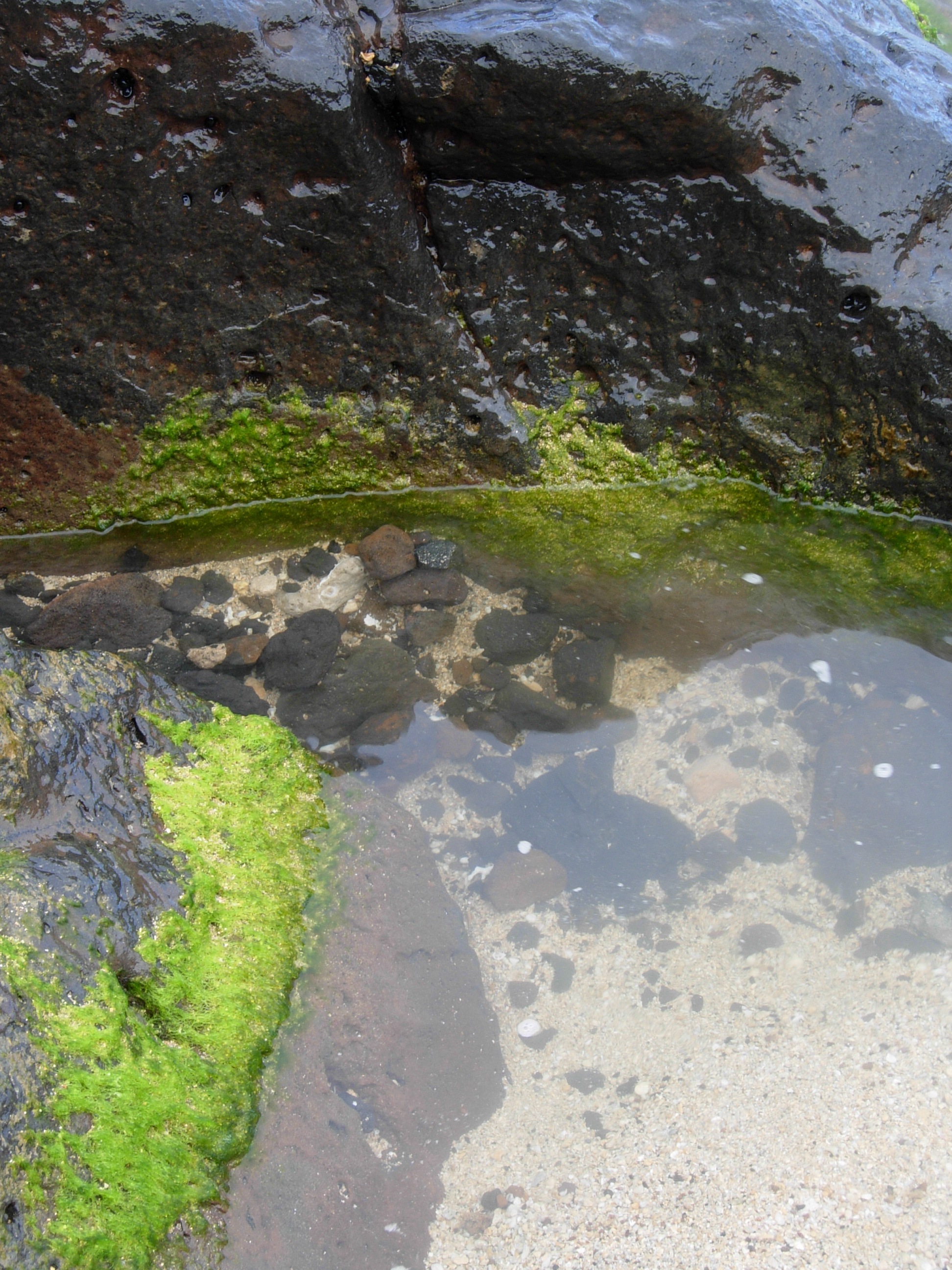 Our last stop was Anini Beach, further east still. Lots of lava rocks strewn around, with not much space to swim around them. This was a much quieter beach, with clear water and lichen on the rocks. Really lovely.