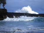 Gaynor sang “I’m gonna wash that man right out of my hair” in South Pacific! Several local surfers were working there magic on the river there. (This also reminds me of a place in Panama called Rio Mar, where a river runs right into the sea; it was a great place, too.) Further out from the river is an outcropping of lava rocks. With the crashing surf, it made for spectacular viewing.