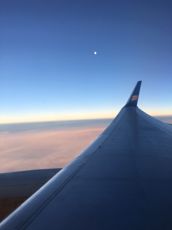 Met up with Andrew and Mindi in the Keflavik airport, had some breakfast. The weather was raw and windy and raining sideways, which I’m guessing is a pretty typical day in Iceland. But we had to walk outside to the tarmac and up a portable set of steps to get in the plane. That would have been fine, but it turns out the plane had a flat, so that had to be changed.