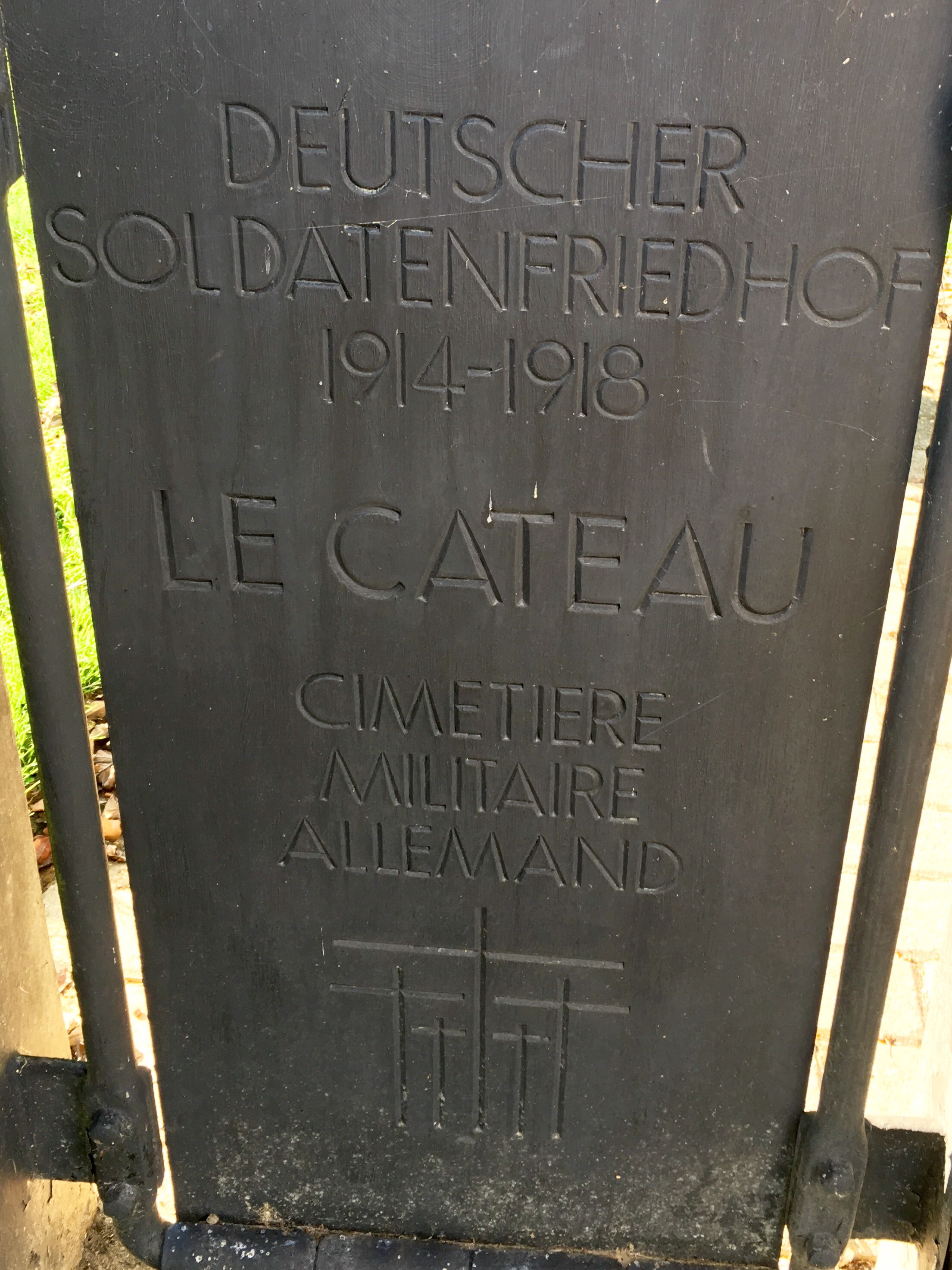 On the way, we stopped at the Cateau-Cambresis international cemetery, which is a German-British cemetery. There was a marked difference between the sides of the cemetery; the German side, although neat, is not manicured like the British side. I much admired that the Commonwealth War Graves Commission (www.cwgc.org) places roses, sedum, Russian sage, tall grasses, and many other plants in front of and around the gravestones. I wish that were allowed at Arlington National Cemetery, where our parents are buried.