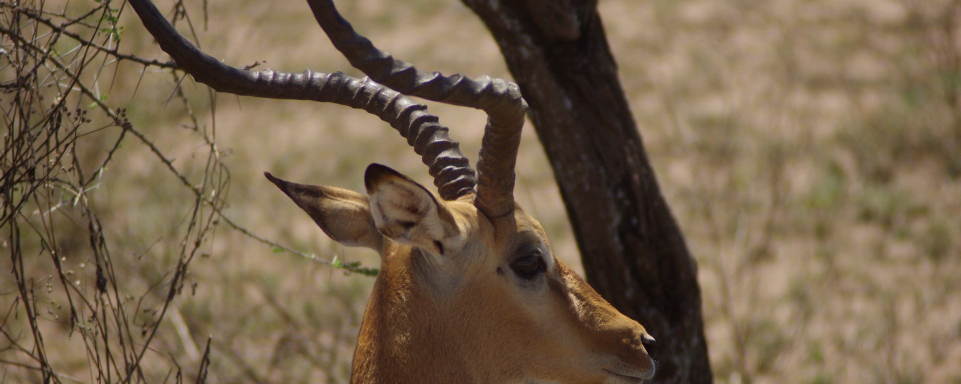 We did see a leopard in tree, very far away. (First branch shooting off to the left.)