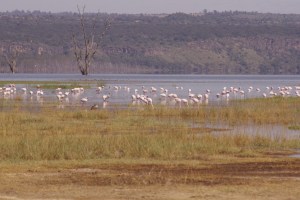 Lesser flamingo and 1 eqyptian goose_IGP5300