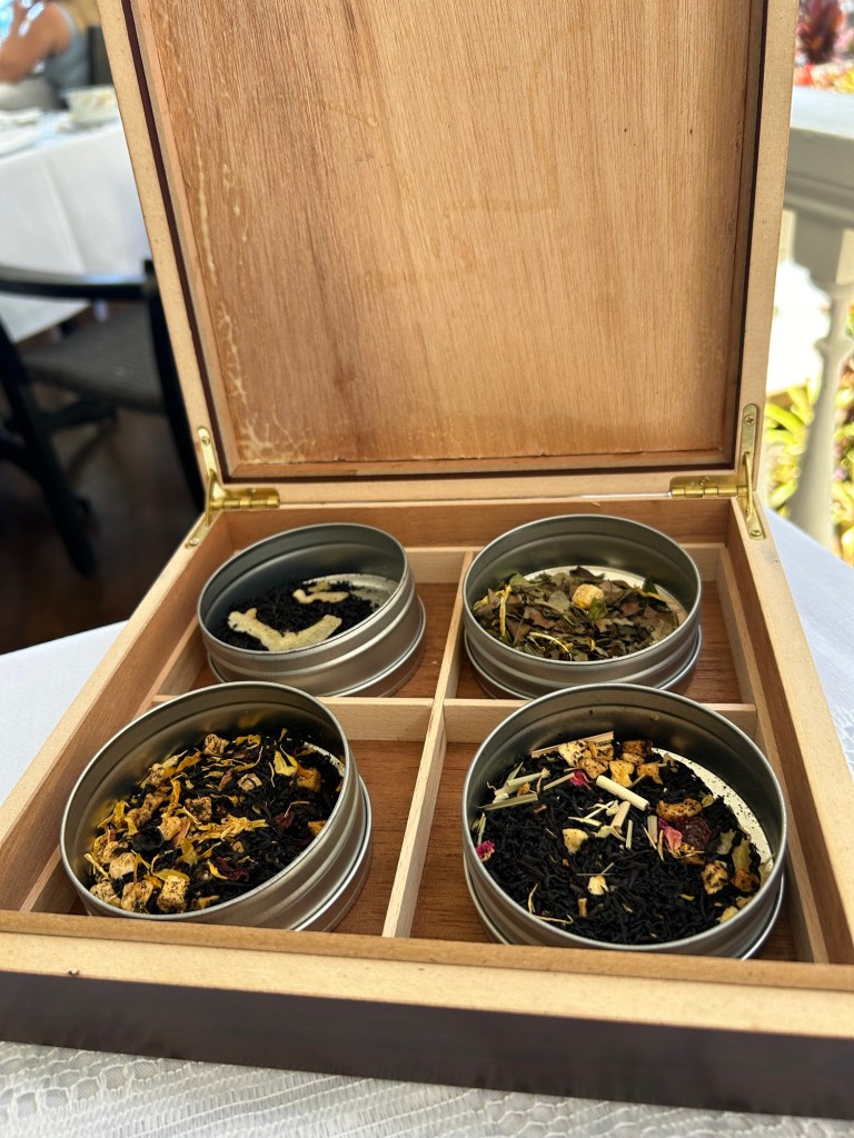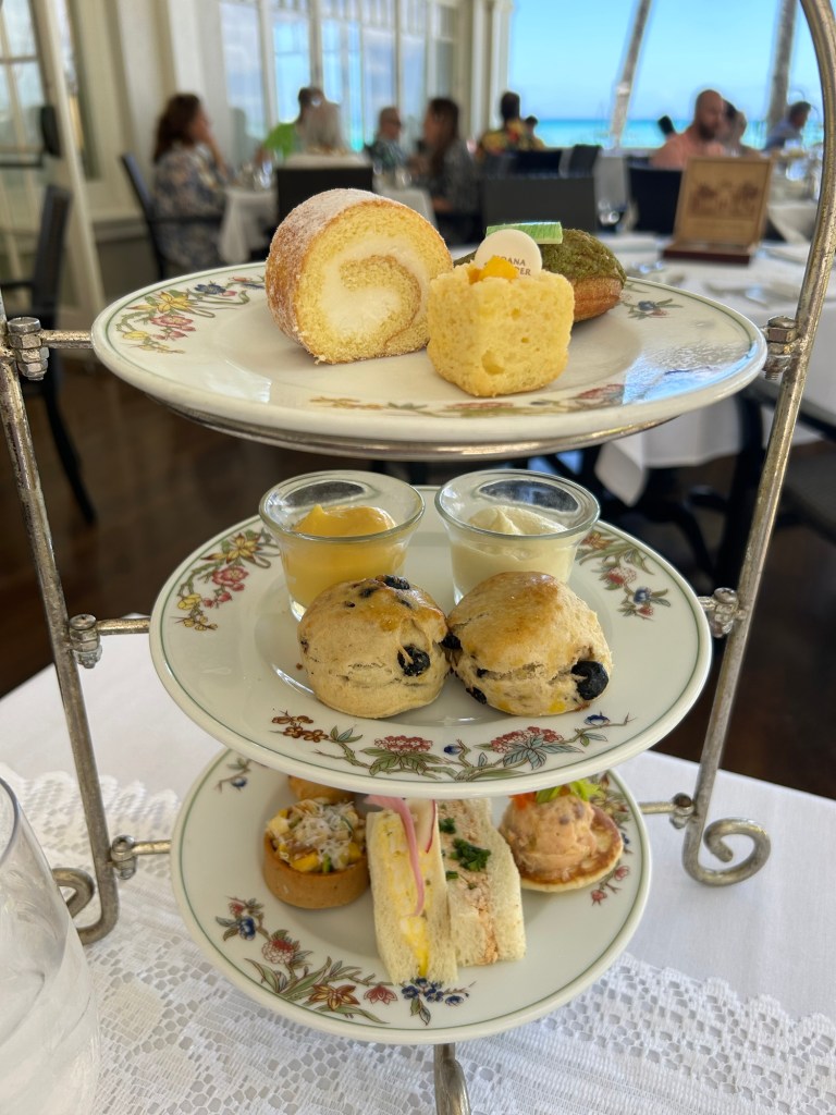 My charming waiter explained the various tea services they had—ranging from the top-end Royal Tea, which includes mimosas and a spa gift bag. I chose the nonalcoholic tea service, the Moana Classic Tea. I could choose from four specialty loose leaf teas: Hawaiian Coconut, Sweet Peach, Passion Orange Guava, or Mango Pineapple. There were also four traditional flavors, including Earl Grey, Darjeeling, and a decaf.