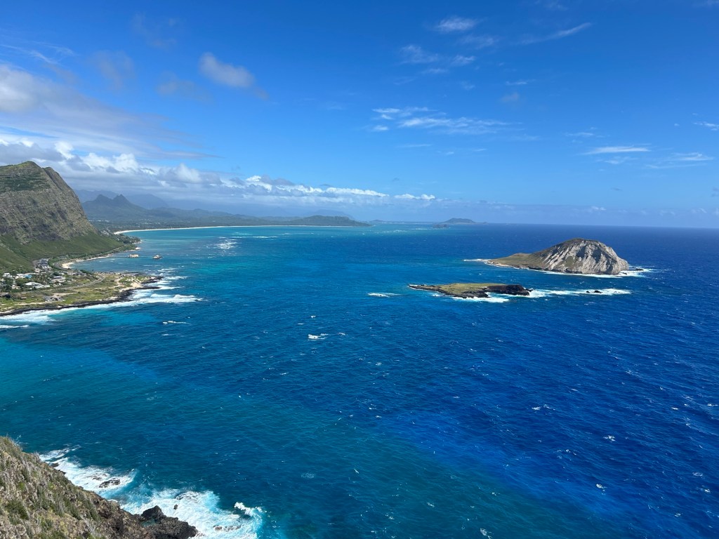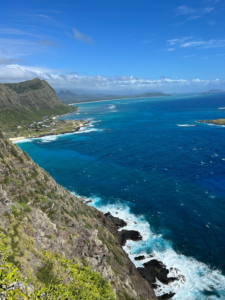 I got there on the rescheduled day around 8:30 and it was packed! Cars parked everywhere; I’m pretty sure I got the last spot, which was right at the entry gate. The hike is listed as easy….um, I don’t think so. Yes, it’s paved, so it doesn’t have the ankle-twisting uneven rocks like Diamond Head. But seriously, who rates these hikes? It’s 2 miles round trip but the incline is at times steep and constant. Or maybe, as I’ve previously mentioned, I’m just old!