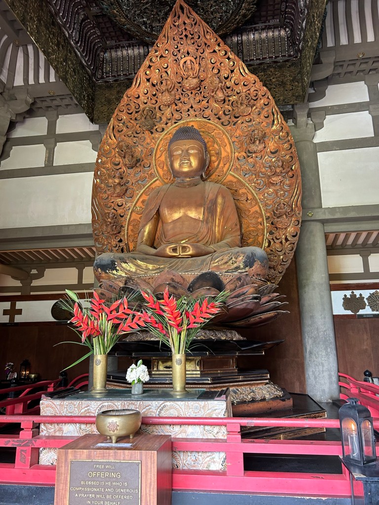 Before you go inside, you remove your shoes. Inside is the Amida Buddha.