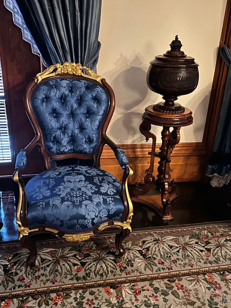 The palace itself is very European, with touches of Hawaii culture and decor. The main staircase was made with native Hawaiian woods.